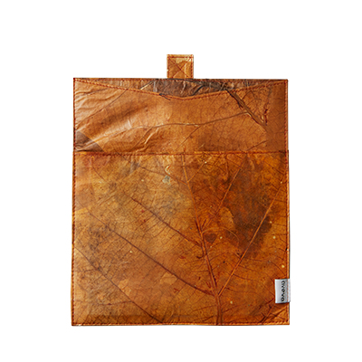 Aveva Designs snygga och moderna fodral Leaf i orange för läsplatta är handtillverkad utav återvunna tropiska löv från norra Thailand. Mindre priviligerade områden i Thailand stöds genom att återanvända detta hållbara material då löven, när de täcker marken, orsakar miljöproblem såsom skogsbränder.