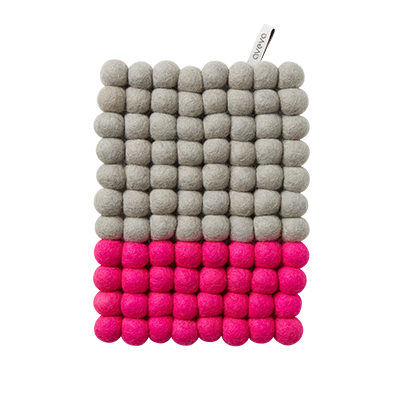 Modernt och stilrent grytunderlägg av 100% högkvalitativt ull i grått och rosa från Aveva Design. Grytunderlägget är smuts- och vattenavisande och både skyddar bordet och ger det en färgklick. Finns i flera fäger och utföranden.