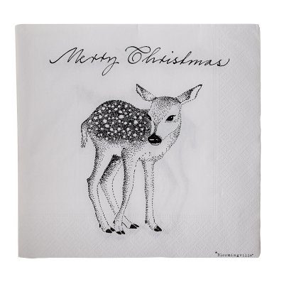 Stämningsfull servett med skissat rådjur på i 33 cm. Ett paket innehåller 20 stycken servetter. Ge dukningen det lilla extra med fina servetter som förhöjer.