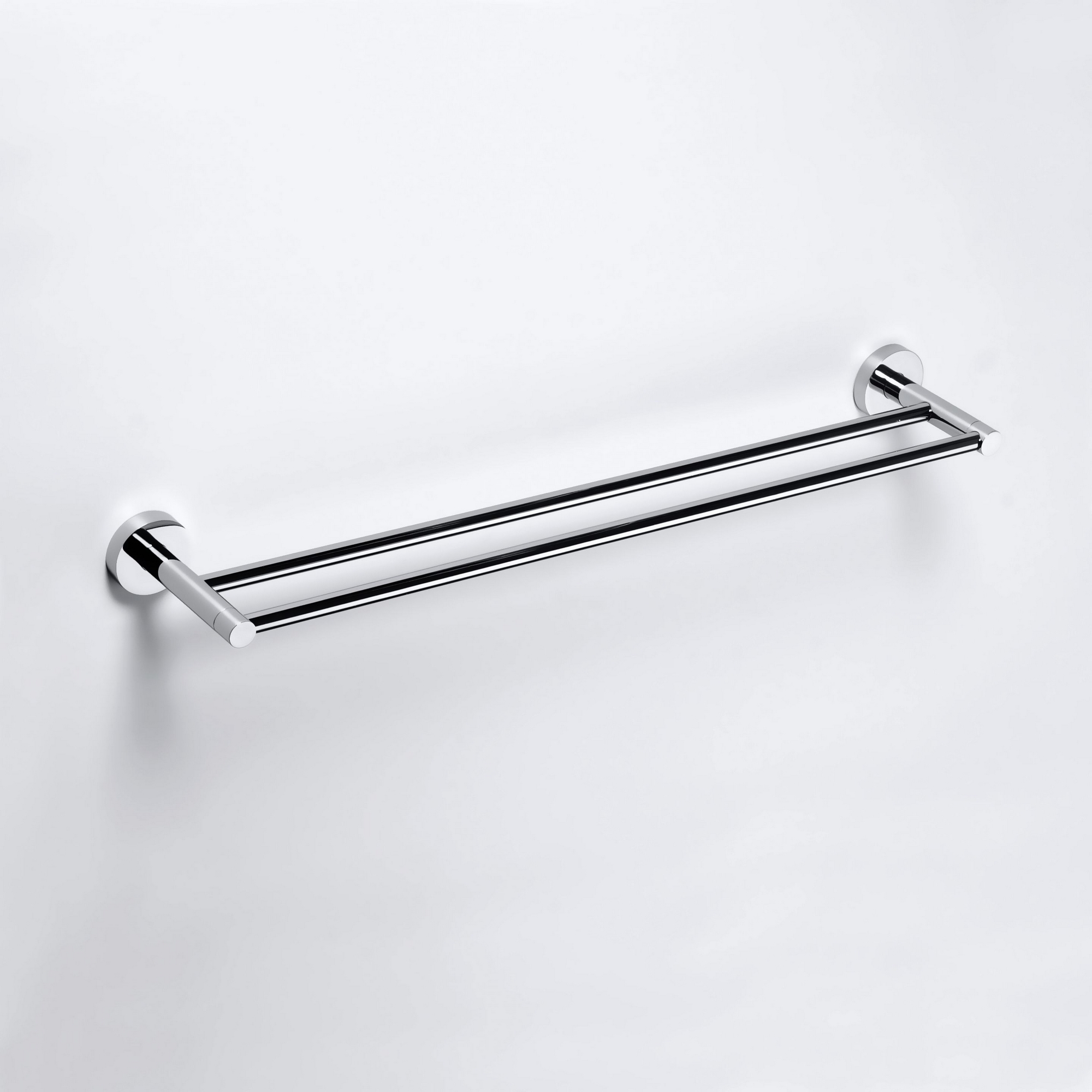 Handduksstång Soft Dubbel är en elegant handduksstång med två stänger från Duschbyggarna. Denna handdukshängare skruvas eller limmas upp på väggen.