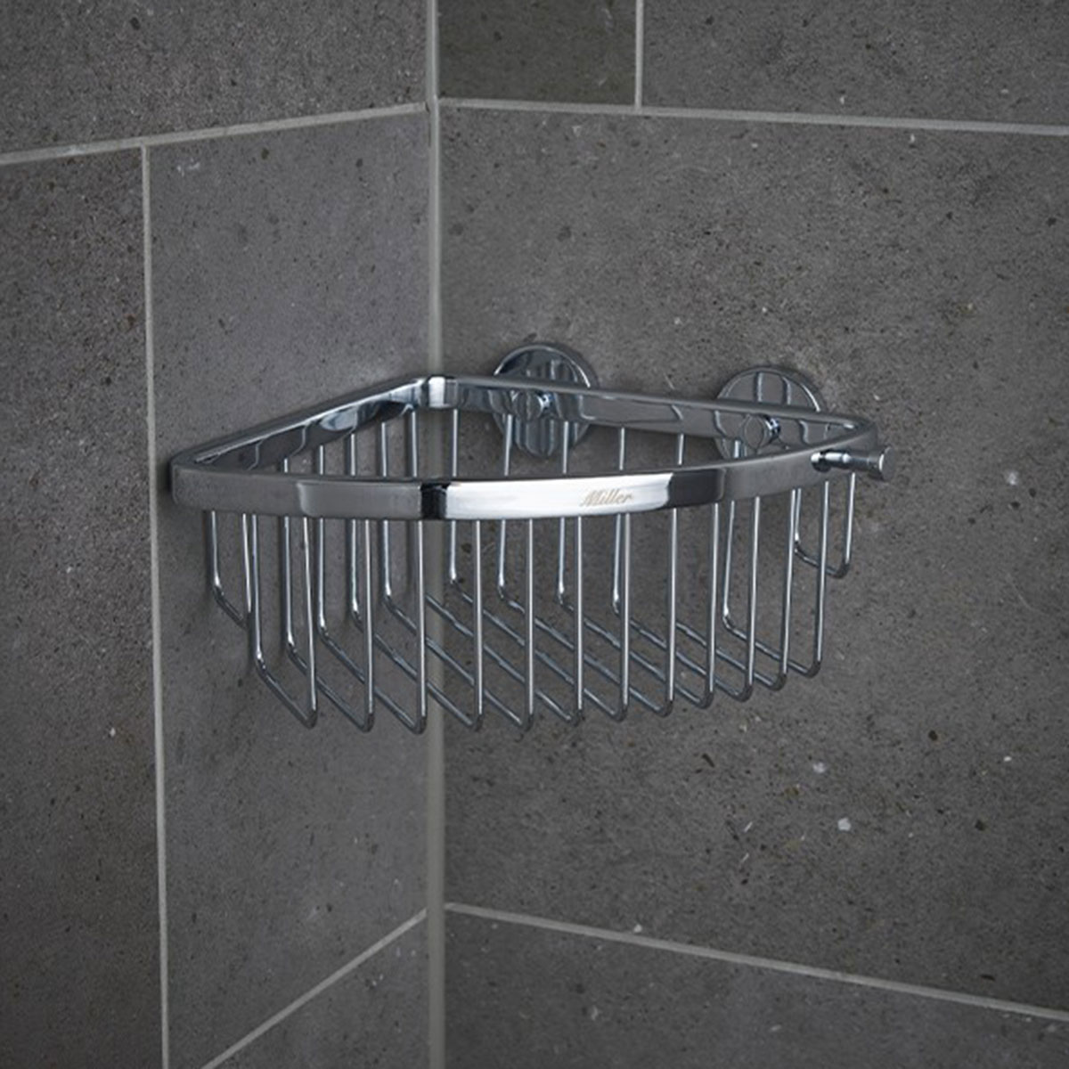 Duschkorg Miller Badrum Classic är en hörnformad duschkorg där du monterar den enkelt via limning. Duschkorgen har en praktisk krok på sidan av korgen.