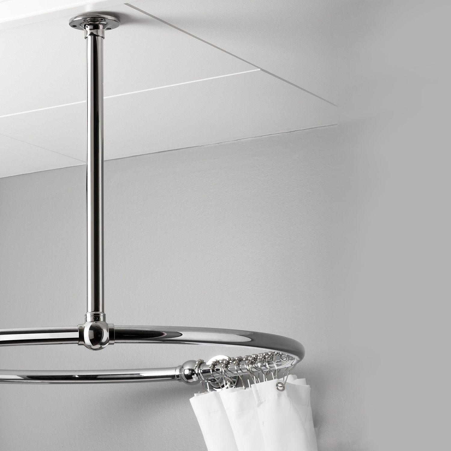 Takfäste till Orion Duschdraperistång. Takhängd och kapningsbart. Orion takfäste är ett tillval om man anser att Orion duschdreperistången behöver extra support när man monterat upp denna mot vägg.