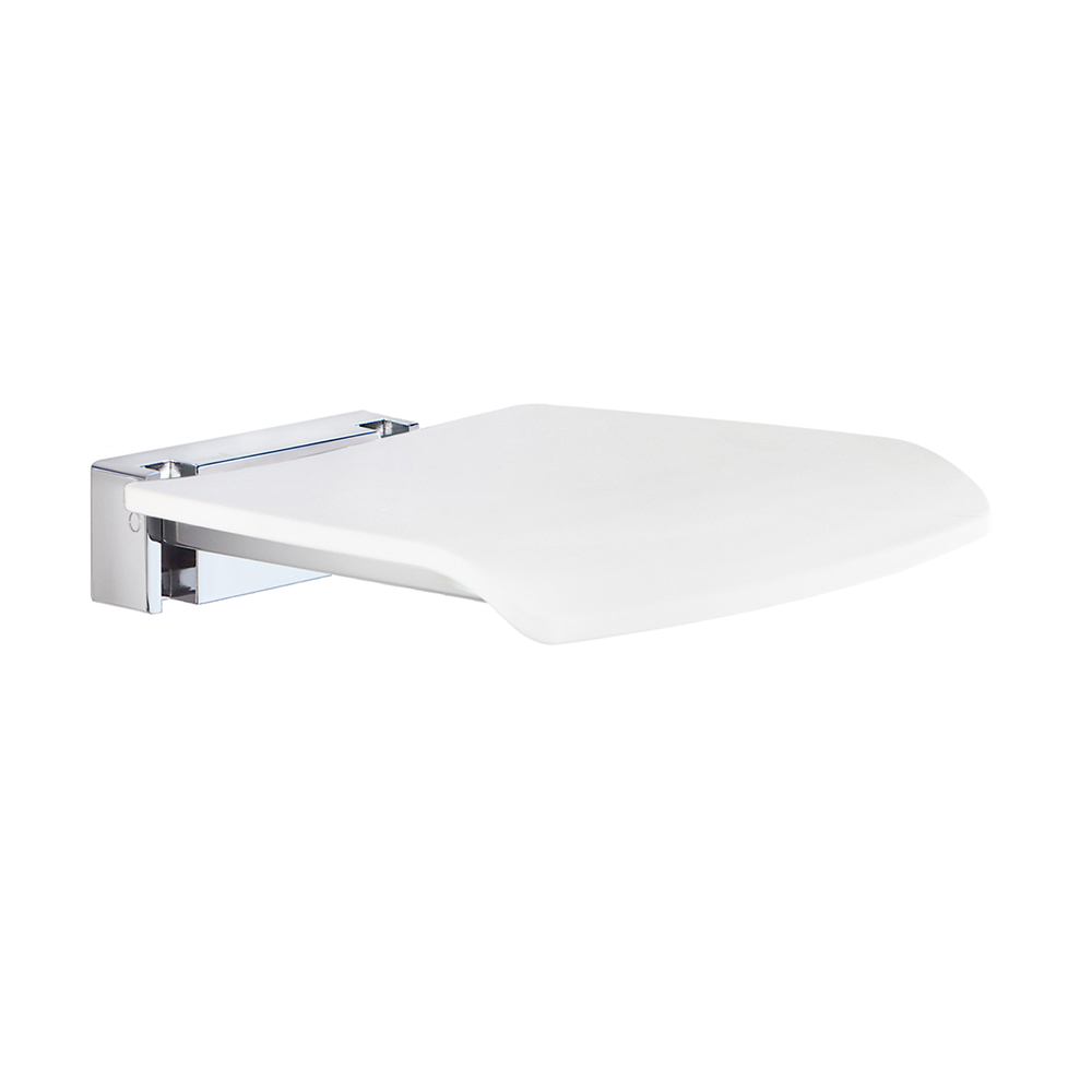 Fällbar vägghängd duschsits i Förkromad zink/aluminium och sits i vit Polypropylen. Avsedd att användas i dusch, spa, badrum.
