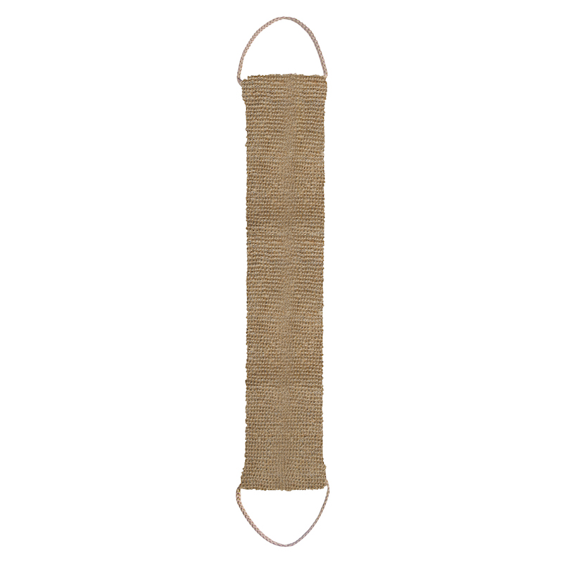 Praktiskt massageband för tex. ryggen, i jute. Ger en mild massage och djuprengöring. Kan användas både till torr- och våtskrubbning för att stimulera blodcirkulationen och avlägsna döda hudceller. Skölj ur och låt lufttorka efter användning.
